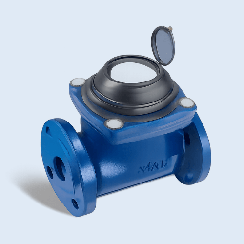 | W Woltmann Type Bulk Water meter (Up to 90Deg/C) Removable mechanism type, magnetically coupled, having dry dial, hermetically sealed totaliser, retrofittable for pulse output and conforming to ISO-4064 Class-B. (Option : Pulse Wire)